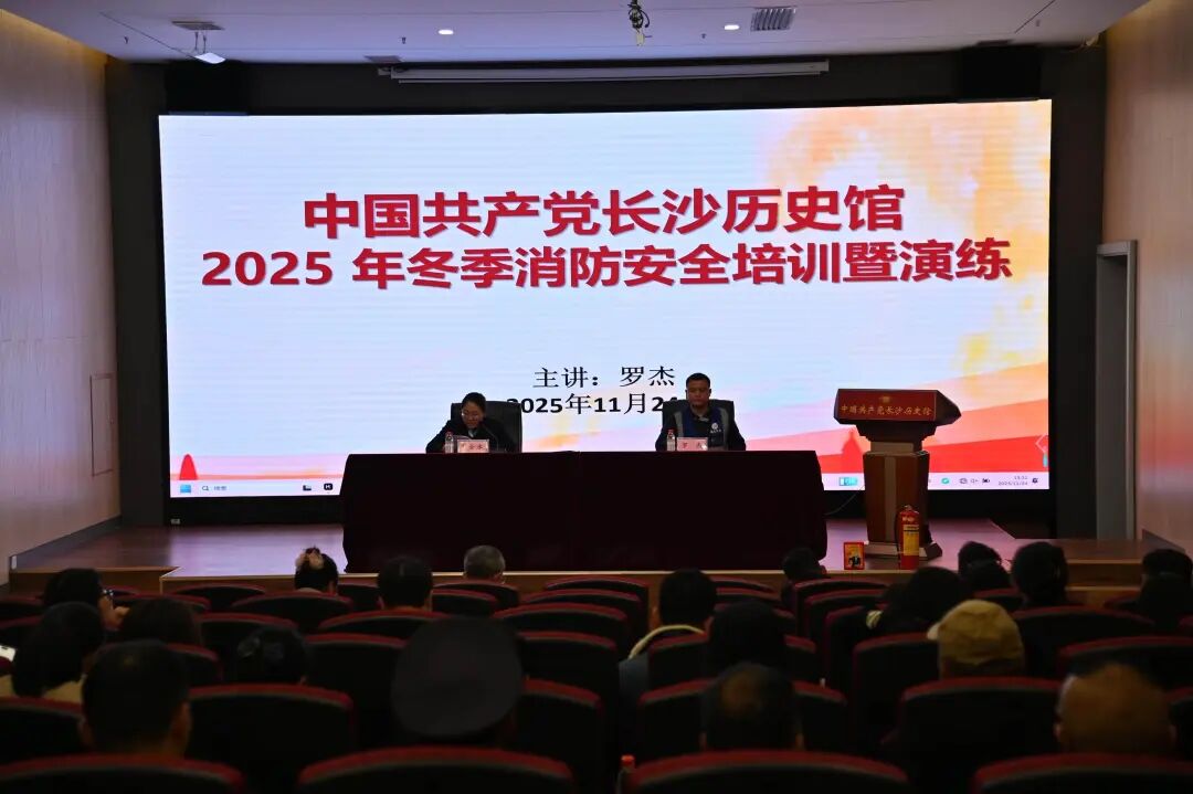 为深入贯彻全国消防宣传月活动部署要求,切实防范冬季火灾风险,全面提升全体干部职工及物业人员的消防应急处置能力,11月24日,中国共产党长沙历史馆开展2025年“全民消防、生命至上 —— 安全用火用电”主题冬季消防培训暨演练活动。此次培训采用“理论 + 实操”的沉浸式教学模式,为场馆的安全防护筑牢坚实屏障。